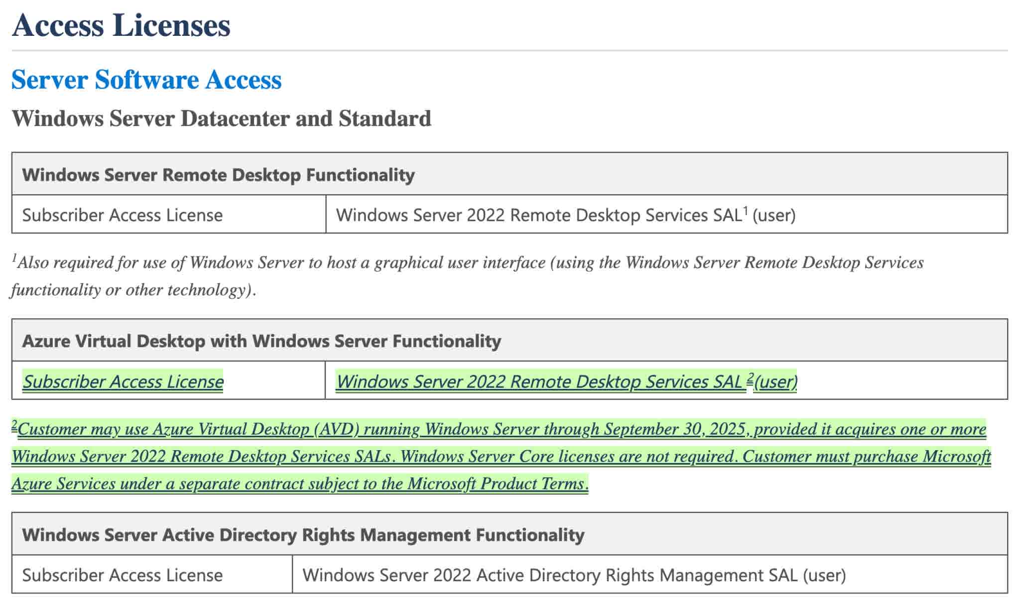We are not sure why Microsoft needed to say that Windows Server Core Licenses are not required. Regular AVD licensing doesn't require them anyway. It only requires BYOL Windows Server RDS CALs, user or device, with active Software Assurance.